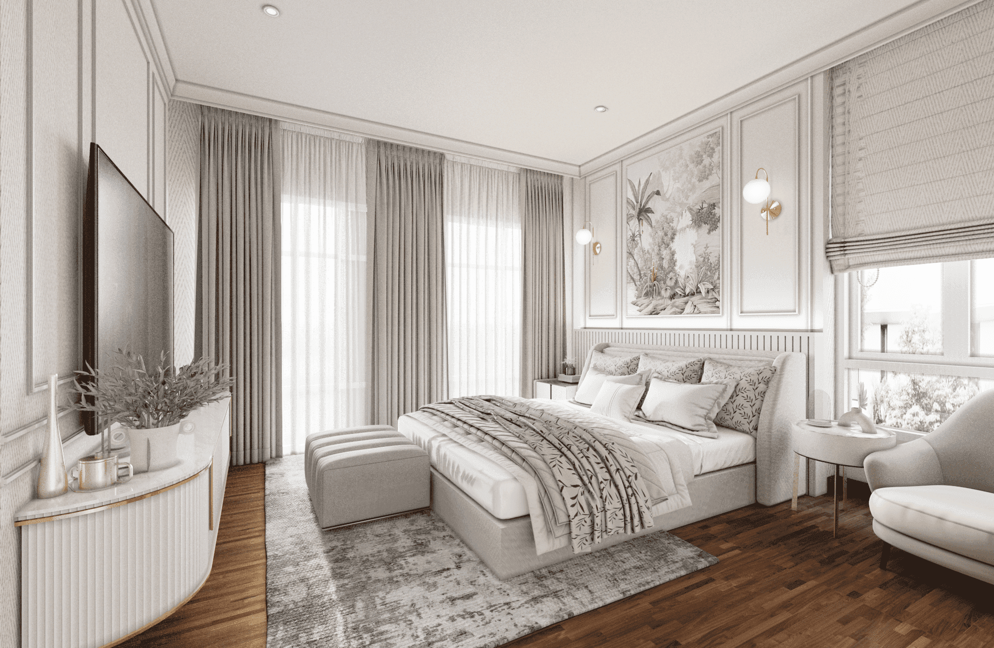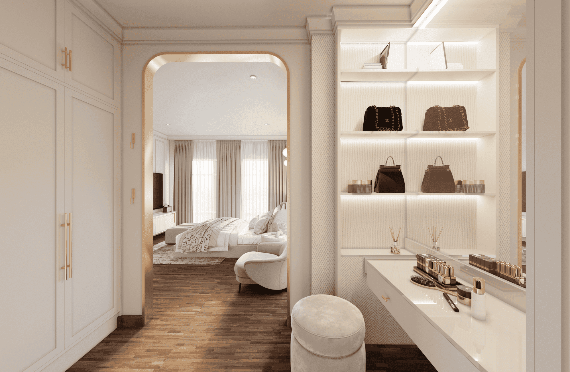 The interior design is conceived as a refined expression of luxury—one that values restraint, clarity, and atmosphere over excess. Luxury here is defined not by ornamentation, but by the quality of space, the precision of proportion, and the emotional comfort experienced through everyday use.