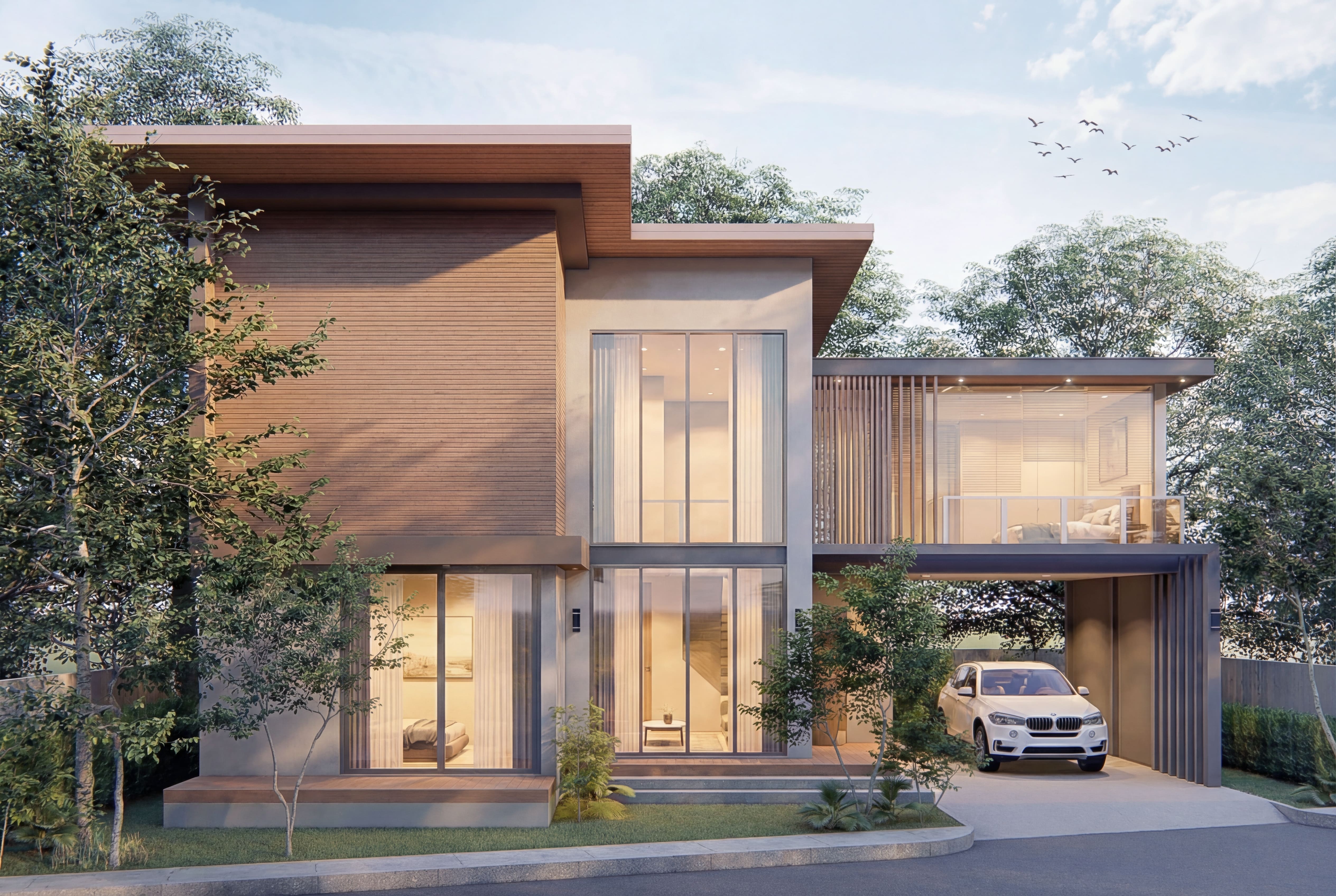 This home was conceived from the idea of escaping the city to find tranquility in a space that remains connected to nature. The design emphasizes materials that reflect calmness, simplicity, and warmth, with clean, sharp modern lines to create a true sanctuary for the soul.