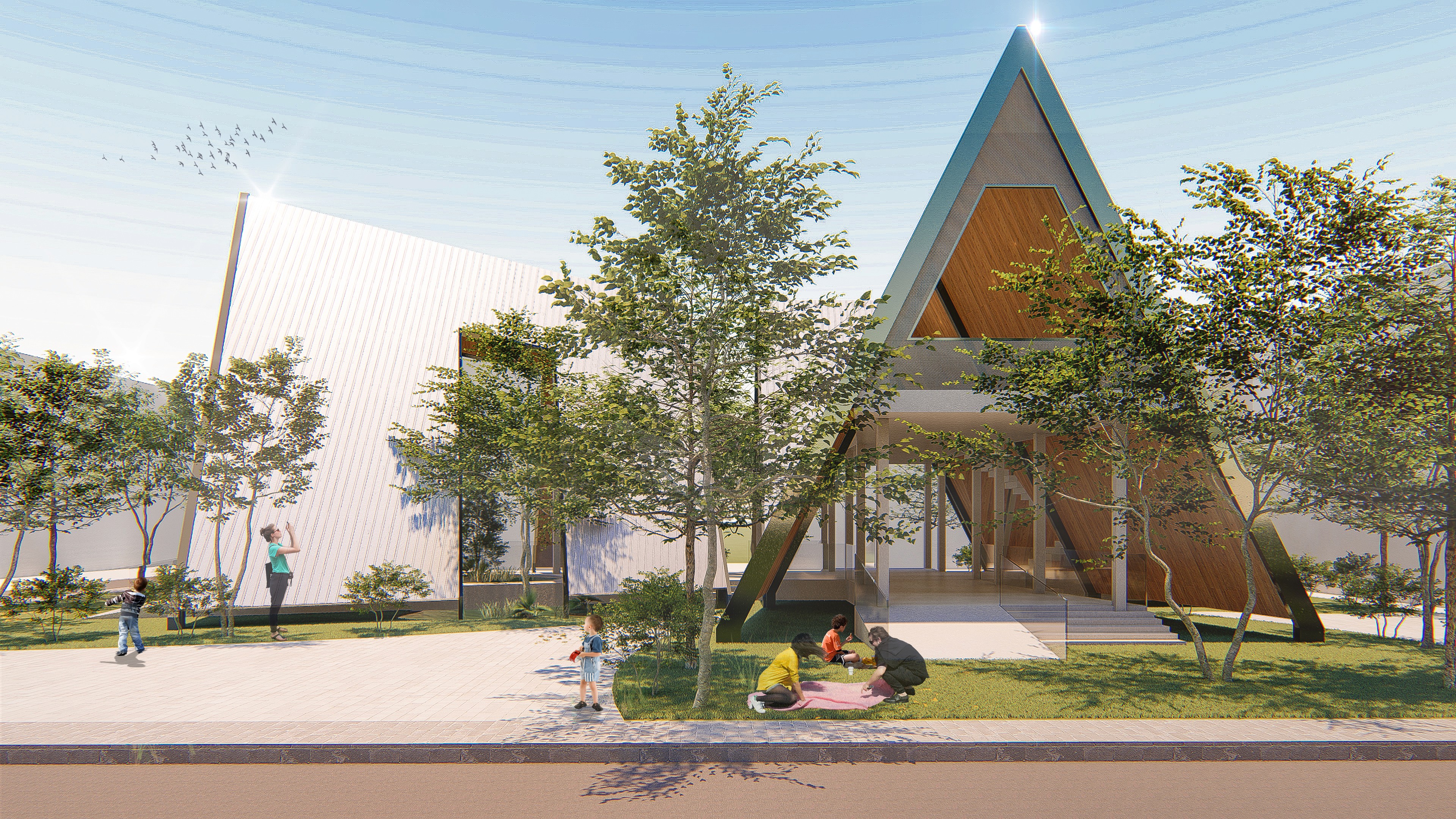 We would like to express our sincere gratitude to all contributors to this architectural competition. The design of this building draws inspiration from the delicate art of paper folding, transforming it into bird-like wings that both support the structure and create a sense of lightness. This concept is complemented by careful data analysis and user-focused research, ensuring that the building responds effectively to evolving needs over time.